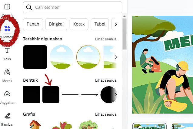 - Lalu kita akan membuat “button”, caranya klik pada “Elemen” yang ingin kamu jadikan hyperlink, bisa berupa teks, gambar, atau bentuk lainnya.
