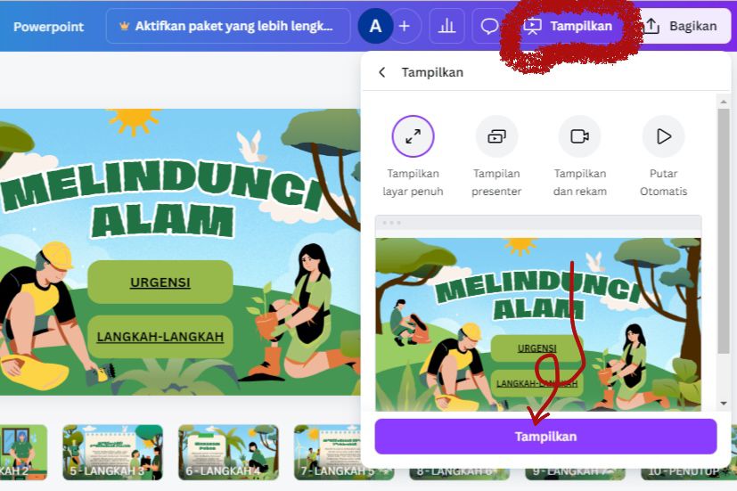 - Setelah selesai semuanya, kamu dapat memeriksa hasilnya melalui fitur “Tampilkan” di kanan atas.